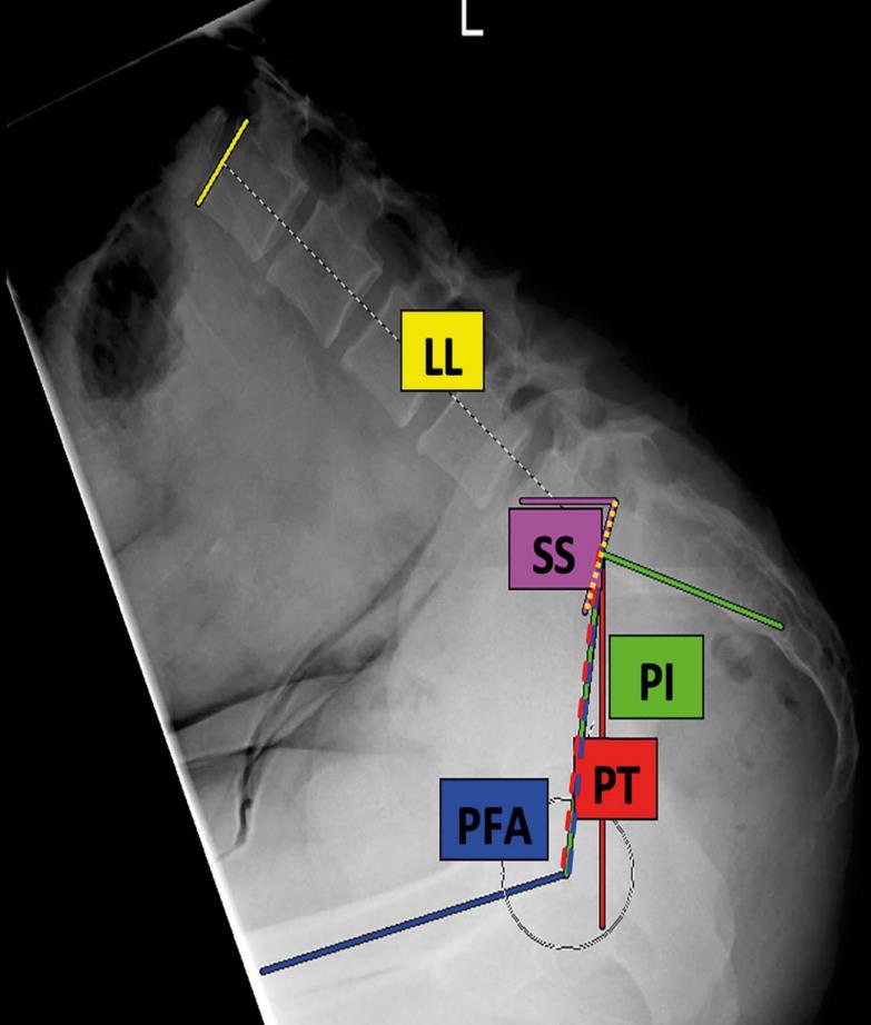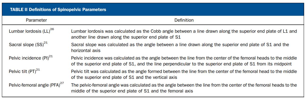 • This was a cross-sectional cohort study of 112 asymptomatic volunteers (age, 47.4 ± 17.7 years; 50.0% female; BMI, 27.3 ± 4.9 kg/m2). All participants underwent lateral spinopelvic radiography in the standing and deep-seated positions to determine maximum hip and lumbar flexion. Lumbar flexion (change in lumbar lordosis, ∆LL), hip flexion (change in pelvic-femoral angle, ∆PFA), and pelvic movement (change in pelvic tilt, ΔPT) were determined. The hip user index, which quantifies the relative contribution of the hip to overall sagittal movement, was calculated as (∆PFA/[∆PFA + ∆LL]) × 100%.