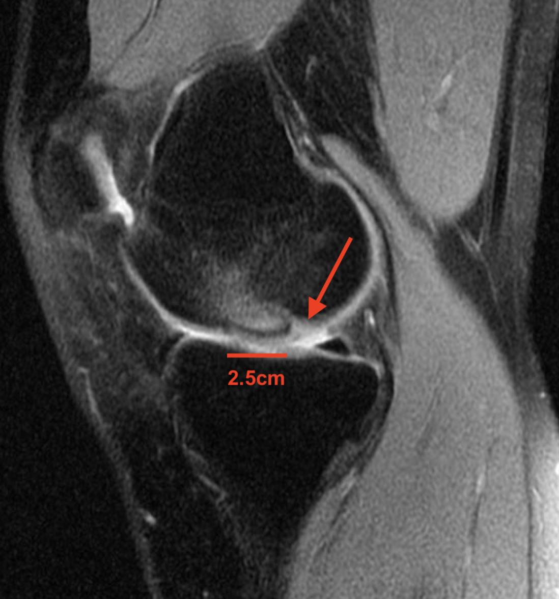 The patient has evidence of an unstable osteochondritis dissecans (OCD) lesion of the lateral aspect of the medial femoral condyle. Given that he is skeletally mature with an unstable lesion, an attempt at internal fixation is recommended. Osteochondritis Dissecans (OCD) represents a pathologic lesion affecting juvenile patients' articular cartilage and subchondral bone, most typically of the posterolateral aspect of the medial femoral condyle. Diagnosis may be made radiographically but can be missed, with an MRI usually required to determine the size and stability of the lesion and to document the degree of cartilage injury. Treatment varies based on skeletal maturity and severity of the lesion. Definitive treatment can be non-operative with bracing and restricted weight bearing in children with open physes. But surgical treatment is preferred in older patients with closed physes and for lesions that are unstable. Unstable lesions are those with circumferential fluid signal (Illustration A) that indicates displacement of the cartilage from the subchondral bone; however, arthroscopic findings of a break in the articular cartilage or a mobile flap detected using the arthroscopic probe are the gold standard in diagnosis. Cruz et al. provide a review of pediatric knee osteochondritis dissecans lesions. The authors note that most pediatric OCD lesions of the knee will heal with non-operative treatment, which includes a period of rest or activity modification with or without immobilization. They conclude, however, that lesions in skeletally mature patients, large lesions, and lesions that show radiographic signs of instability are less likely to heal without surgical intervention, with the goals of surgical treatment including maintenance of articular cartilage congruity and rigid fixation of unstable cartilage flaps. Heiden et al. provide a technique article for open treatment of unstable osteochondritis dissecans lesions of the knee using autologous bone grafting and bioabsorbable fixation. The authors note that although the pathology can be challenging when treating these lesions operatively, attention to the subchondral bone is critical to success. They conclude that autologous bone graft can easily be obtained locally and used to restore the bony architecture, with the subsequent use of bioabsorbable implants providing a robust means of fixation that allows for single-stage surgery.Figures A and B are AP and lateral radiographs demonstrating incongruence of the lateral aspect of the medial femoral condyle consistent with an OCD lesion in a skeletally immature individual. Figures C and D represent coronal and sagittal fluid-sensitive MRI sequences showing a ~ 2.5 x 2 cm OCD lesion of the medial femoral condyle with fluid circumferentially surrounding the cartilage fragment indicating an unstable lesion. Illustration A denotes the area of the cartilage flap that allows for the subchondral fluid to accumulate. Incorrect Answers: Answer 2: Bracing and non-operative management is indicated in stable lesions in children with open physes and in asymptomatic adults Answers 3-4: Though MACI and OATS may be indicated if the lesion does not heal with fixation, in a young athlete with an unstable lesion, an attempt at fixation to salvage the patient's native cartilage is a more optimal initial treatment option. Answer 5: Microfracture has largely fallen out of favor for large lesions and subchondral drilling is only effective in stable lesions without MRI evidence of circumferential fluid enhancement.
