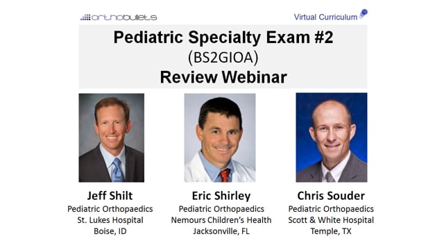 This webinar reviews the 50 questions that appeared on Pediatrics #2 Specialty Exam (BS2GIOA). Click link below to take the exam if you have not yet done so:http://www.orthobullets.com/post/view?id=1291Some Helpful Tips:1. Please post any "chat" questions in the Comments window below. Our faculty will answer your questions ASAP. 2. For better video resolution click expand screen on the bottom right of the video.2. Questions are ordered in a standard review order which is different than the order by which you took the exam.3. You can view the questions in a separate window by clicking the OBQ link in the column on the left.4. You can go directly to the video chapter or question by clicking the "time stamp" link in the column on the right.Note: We apologize for the errors in the order of the questions in the video table of contents. It should be corrected next week.Please send us an email at info@orthobullets.com to give us your opinion on this video format.