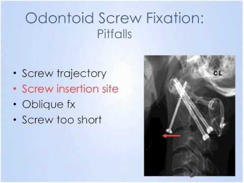 Education presentation on the indications and surgical technique of anterior screw fixation of odontoid fractures.