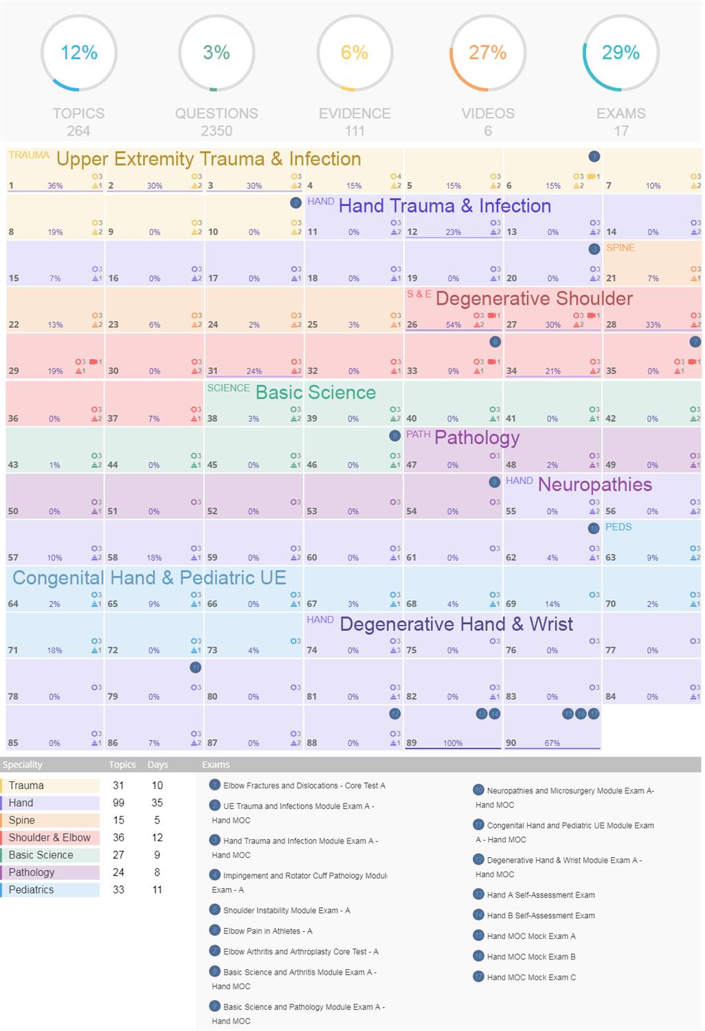 NOW WITH ADAPTIVE CALENDAR! 66.5 AMA PRA Category 1™ CME Credits20 ABOS Approved SAE CreditsDesigned to prepare surgeons for ABOS Surgery of the Hand Practice Profiled and Combined Recertification Examination COMPLETE ALL 90-DAYS (LESSONS) AT YOUR OWN PACE A comprehensive 90-day reading curriculum covering 264 Hand topics & daily key scientific articles. 14 module exams and 3 mock exams to diagnose your weaknesses, reinforce your learning, and improve your testing performance. Integration with our new Peak Adaptive Learning Platform helps you learn more efficiently by tracking your progress and directing you to your areas of weakness. Study Plan comes with a 12-month subscription to all the Premium Content & Adaptive Learning Technology of PEAK HAND MOC 90-DAY PLAN + HAND MOC 90-DAY PLAN + 12-MONTH PEAK SUBSCRIPTION 12-MONTH PEAK SUBSCRIPTION + NO CME 66.5 AMA PRA Category 1 Credits™ 20 ABOS-approved MOC SAE Credit $125 37% SUMMER DISCOUNT | NORMALLY $200 $274 16% SUMMER DISCOUNT | NORMALLY $480 NEW PERSONALIZED ADAPTIVE CALENDARPOWERED BY PEAK ADAPTIVE LEARNING STUDY PLAN SCHEDULE Plan Details The 2018 Hand MOC 90-Day Study Plan is designed to prepare US Physicians for the 2018 ABOS Orthopaedic Hand Practice-Profiled Recertification Examination, which is administered in from August 29, 2018 through September 11, 2018. The Study Plan can also be taken by any surgeons who want to reinforce their Hand knowledge and stay up-to-date on current Hand literature. All of the daily study plans are available immediately starting the day you enroll. All of the daily study plans are posted in the Study Plan "classroom", allowing you to complete the Study Plan on your own schedule Access the Study Plan classroom by going to the Groups page and clicking the Study Plan logo You may complete the Study Plan and take the exams at any time until May 11, 2019 The Hand MOC 90-Day Study Plan consists of three components: Daily Study Plans reviewing 264 Topics The 2018 MOC Hand 90-Day Study Plan delivers daily emails telling you exactly what topics to review and what questions to do We have carefully selected Hand topics covering Upper Extremity Trauma & Infection, Hand Trauma & Infection, Spine Conditions, Degenerative Shoulder Conditions, Degenerative Elbow Conditions, Basic Science, Pathology, Neuropathies & Microsurgery, Congenital Hand & Pediatric UE, and Degenerative Hand & Wrist to prepare you for the MOC Hand Clinical Exam Frequently-tested articles, often with a free full text PDF, are included in the daily study plans 14 Module Exams After each unit take Module Exams (25 questions) testing that material, reinforcing your knowledge 3 Mock Exams 3 Hand MOC Mock Exams (150 questions) CME Tracker Our CME Tracker will help you navigate the Study Plan, ensuring that you complete all the course requirements. PRICING & PURCHASE INFORMATION Study Plan + CME: $274 Gives you access to gives you access to the daily study plan, mock exams, and all premium content AND Total of 66.5 AMA PRA Category 1™ CME Credits CME Requirements: complete daily study plans complete 13 exams complete Post-Course CME Survey Including 20 ABOS approved MOC SAE Credits MOC SAE Requirements: Complete all 100 scored/recorded questions on each of two different Self-Assessment Exams (each worth 10 MOC SAE Credits) Study Plan Alone (No CME): $125 Gives you access to gives you access to the daily study plan, mock exams, and all premium content Payment Instructions Payment is made through PayPal and you automatically be redirected to your purchased product Orthobullets. Your login credentials on Paypal may be different than your login credentials on orthobullets be sure to log in with your usual orthobullets email after you made a purchase with any email on paypal. example, if you use your spouses (or other) Paypal account when you are redirected to orthobullets and asked to login in, log in with your usual orthobullets credentials (even though the email is different than Paypal. You can confirm if your purchase was registered on orthobullets by clicking "Purchased Products" in the user menu. If you have any problems email us at info@orthobullets with your Paypal transaction ID. HAND MOC 90-DAY PLAN + HAND MOC 90-DAY PLAN + 12-MONTH PEAK SUBSCRIPTION 12-MONTH PEAK SUBSCRIPTION + NO CME 66.5 AMA PRA Category 1 Credits™ 20 ABOS-approved MOC SAE Credit $125 37% SUMMER DISCOUNT | NORMALLY $200 $274 16% SUMMER DISCOUNT | NORMALLY $480 Q & A Q: If I lost some past daily Study Plan emails is there a way to get the old daily study plans? Answer: Yes. All past daily study plans can be found in the Study Plan private group. Scroll down to the "Comments" section where you will see the past daily study plans. Q: What if I am a member of the group but am still not getting daily emails in my inbox? Answer: Check your spam folder and promotions folder on your email. Because Orthobullets sends high volumes of email, our email is sometimes filtered into spam folders or promotions folders. Be sure to look there for our emails. If that is the case, mark us as "not spam" and add info@orthobullets.com to your contact list to avoid this in the future. If you are still not getting emails, send us a message at info@othobullets.com and we will figure it out. Q: How do I get to the Study Plan private group? Answer: Click groups in the top menu, then click on the logo for the group. Q: If I bought another Study Plan, can I get this one. Answer: Our Study Plans work on a 12-month premium content model. Thus, you have access to all of our Study Plans during your 12-month subscription. If you have purchased another Study Plan, and would like to be added to this one send us a message at info@orthobullets.com CME Information Orthobullets and the Foundation for Orthopaedic Research & Education (FORE) are pleased to partner and offer CME for the MOC Daily Study Plans.Units:A maximum of 66.5 AMA PRA Category 1™ Credits Price:$274 with CME & SAE CME Course Requiremen