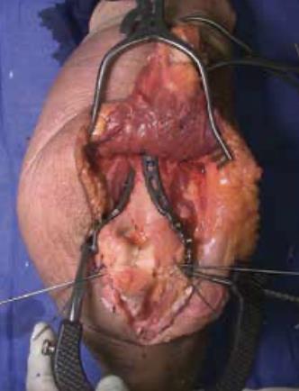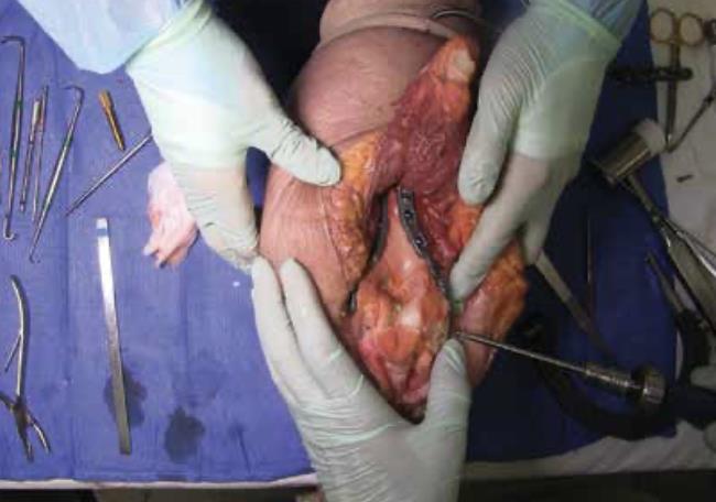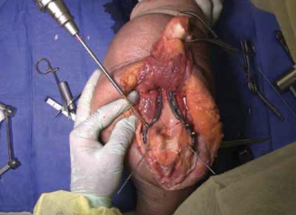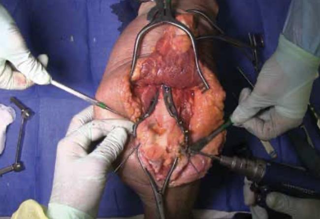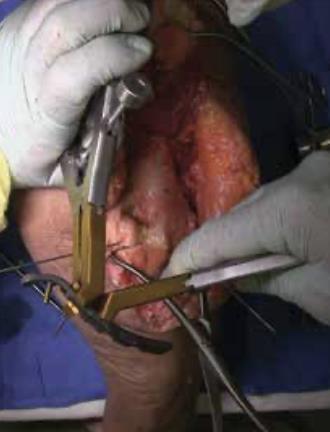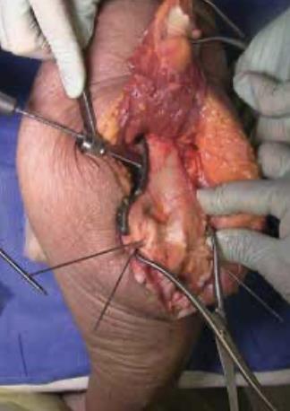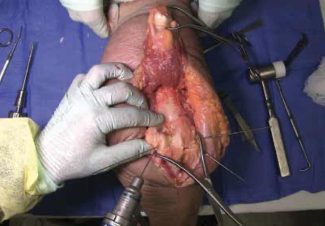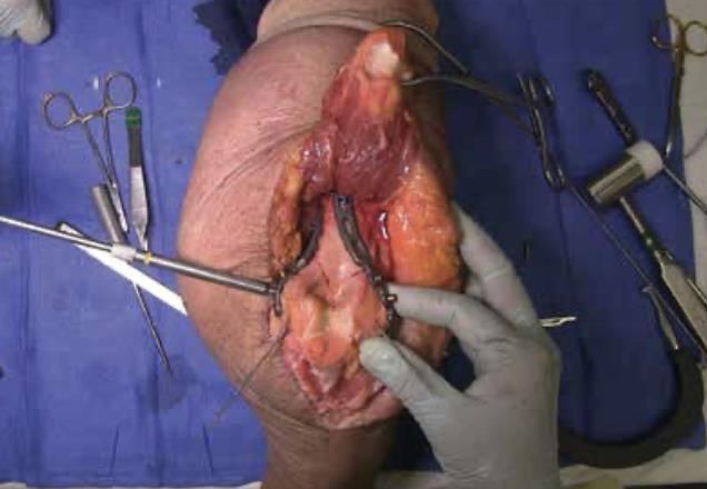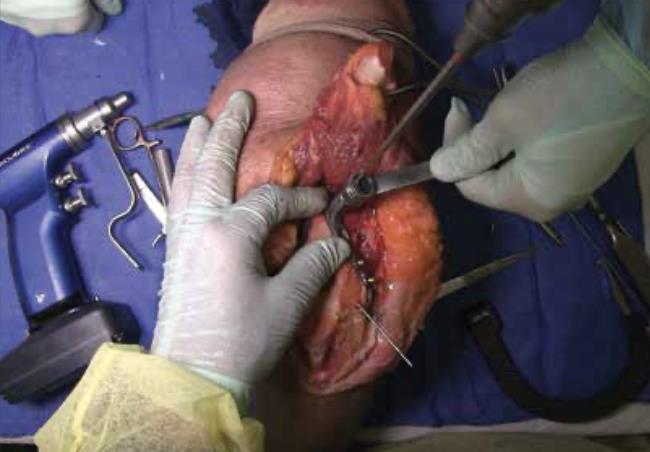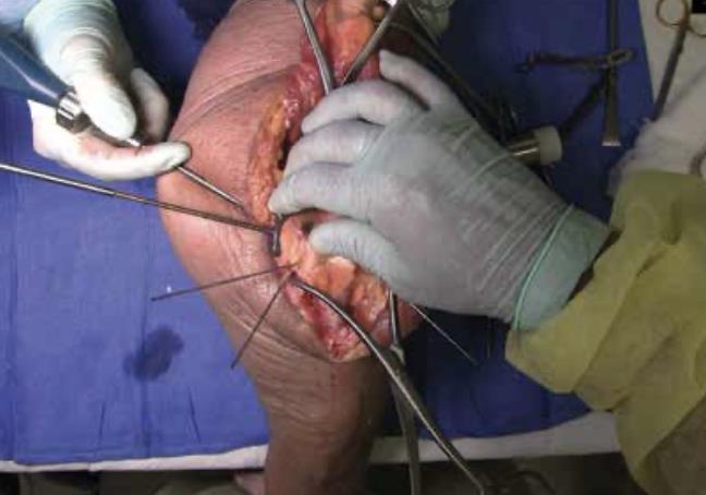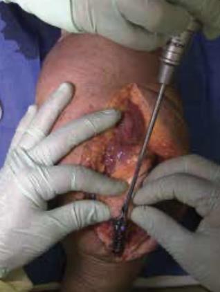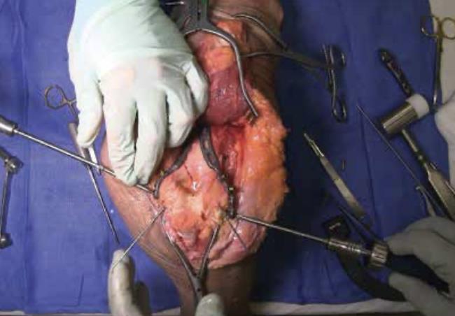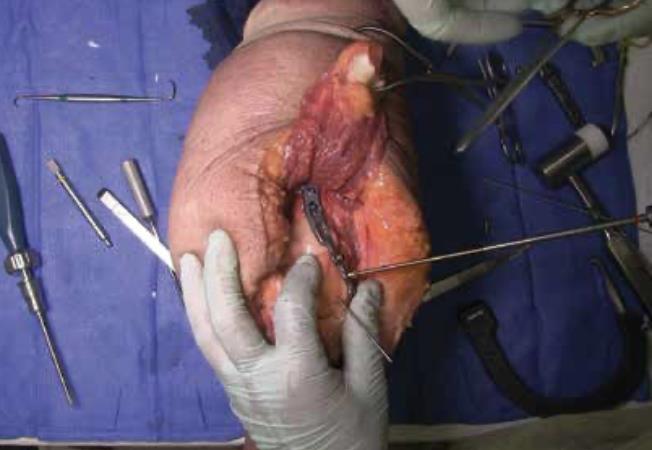Summary The Skeletal Dynamics Humeral Plating Set consists of the following systems: Distal Humerus Plating System (this page) Midshaft Humerus Plating System The Skeletal Dynamics Humeral Fixation Set contains bone plates for the repair of distal and midshaft humerus fractures. Included in the set are bone screws, K-Wires, and specialized instrumentation. Related Implants Distal Humerus Plates Medial Direct Plate Lateral Direct Plate Lateral Capitellar Plate Lateral Helical Plate Supracondylar Plate with extension for distal fractures Humeral Shaft Plates Midshaft Narrow Plate Midshaft Broad Plate Indications Distal humerus fractures Distal humerus nonunion Distal humerus osteotomies Anatomy Osteology elbow is a hinged joint articular surface is in 6 degrees of valgus 5 degrees of external rotation 30 degrees of flexion trochlea articulates with sigmoid notch allows for flexion and extension capitellum articulates with proximal radius allows for forearm rotation Muscles common flexors (originate from medial epicondyle) pronator teres flexor carpi radialis palmaris longus FDS FCU common extensors (originate from lateral epicondyle) anconeus ECRL ECRB extensor digitorum comminus EDM ECU Ligaments medial collateral ligament anterior bundle originates from distal medial epicondyle inserts on sublime tubercle primary restraint to valgus stress at the elbow from 30-120° tight in pronation lateral collateral ligament originates from distal lateral epicondyle inserts on crista supinatorus stabilizer against posterolateral rotational instability tight in supination Nerves ulnar nerve resides in the cubital tunnel in a subcutaneous position posterior to the medial condyle radial nerve anatomic landmarks in the spiral groove 15cm proximal to distal humeral articular surface 10cm from the medial edge of the olecranon 7.5cm from the lateral edge of the olecranon 3.9 cm (two finger-breadths) proximal to the triceps aponeurosis runs between brachioradialis and brachialis proximal to elbow posterior antebrachial cutaneous nerve (PABCN) branches in the posterior arm divides into PIN and superficial radial nerve at the level of the radial head Blood supply intraosseous and extraosseous blood supplies that may be compromised by the injury Approach A posterior incision, including exposure of the ulna via an olecranon osteotomy. Technique (Posterior Approach with Olecranon Osteotomy) Exposure Make a posterior incision. Use caution to identify and release the ulnar nerve. Expose the ulna for an olecranon osteotomy. Preparing olecranon osteotomy Place a 3 hole Proximal Ulna Plate on the surface of the proximal ulna. Make a narrow incision, parallel to the tendon fibers and through the triceps insertion, to apply the home-run tab onto the surface of the olecranon. Note the presence of osteophytes on the olecranon, Osteophytes may prevent plate from sitting flush with bone. Drill through the center of the gliding hole using the 2.7mm x 50mm Drill Bit. Using the appropriate scale of the depth gauge, measure then insert a 3.5mm compression screw and tighten with the T-10 Driver. Drill through the home-run tab using the 2.7mm x 80mm Drill Bit. Using the appropriate scale on the metaphyseal side of the depth gauge, measure and insert a 3.5mm compression screw (multi-thread compression) and tighten with a T-10 to reduce the plate to the ulna. With the plate firmly on the ulna, drill the two olecranon screw holes using the 2.7mm x 50mm Drill Bit. The plate will be used as a template to direct the osteotomy placement and restore original ulnar anatomy during closing. Remove the Proximal Ulna Plate. Apply the osteotomy cutting guide with the grooved side facing the bone and insert a 3.5mm compression screw in the gliding slot. Position the proximal edge of the cutting guide level with the two predrilled olecranon screw holes. Further secure the cutting guide by inserting a 2.0mm K-Wire in either the proximal or distal guide wire hole. Tighten the 3.5mm compression screw to prevent vibrational loosening while cutting. Olecranon osteotomy Perform the olecranon osteotomy using a blade with minimum dimensions of 12mm wide and 15mm long. Remove the olecranon guide and complete the osteotomy using a saw or osteotome. Fracture exposure Reflect the olecranon and triceps proximally, exposing the fracture. Reduction Articular fragment Debride the fracture sites and reduce articular fragments. Column Reduce the articular portion to the humeral shaft using 1.5mm K-Wires. The K-Wire in each column should be placed as posterior and close to the midline as possible to prevent interference during Trochlea Compression Screw insertion. Release soft tissue from the tip of the medial and lateral epicondyles, and any osteophytes present, to expose for plate application. Plate selection Select the first plate (medial or lateral). If necessary, contour to optimize fit using bending instruments. If using bending pliers, a Locking Cap can be applied temporarily to prevent deformation of the distal hole. Shaft fixation Position the plate such that the epicondylar screw hole (2nd node on the plate) is located on the apex of the epicondyle. First, fix the plate to the proximal fragment. Using the HPS Drill Guide, drill through the chosen FreeFix® slot using the 2.7mm x 50mm Drill Bit. Using the FreeFix® scale of the depth gauge, measure then insert a 3.5mm compression screw (FreeFix® Compression) for fixation to the humeral shaft. Distal fragment fixatiion Provisionally secure the articular portion to the shaft by inserting, through the Epicondylar Node, a 2.7mm provisional Smooth Peg or a 2.0mm K-Wire as follows If a 3.5mm Metaphyseal Screws will be later used for final fixation, use a 2.7mm Drill Bit to drill through the Epicondylar Holes and insert the Smooth Pegs with the T-10 Driver. If using 2.7mm Metaphyseal Screws for final fixation, insert the 2.0mm AIMing Guide into the pre-loaded Drill Guide and drill through the Epicondyle with a 