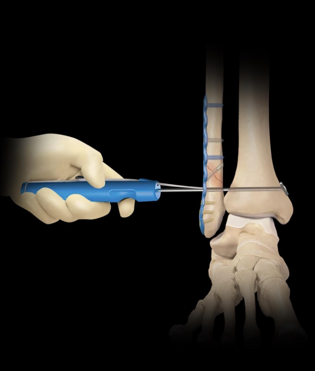 Design The Syndesmosis TightRope XP implant system features a unique delivery mechanism that allows the user to insert a Syndesmosis TightRope implant without pulling a needle through the medial skin Gives the user control to flip the medial oblong button below the skin for less soft-tissue interposition Tension Handles Designed to tension the Syndesmosis TightRope implant without hurting the surgeon’s fingers Trocar Style Drill Bit Reduces skiving off the fibula when drilling in the transmalleolar plane 30˚ anterior to the coronal plane Indications Provide fixation during the healing process following a syndesmotic trauma Fixation of syndesmosis (syndesmosis disruptions) in connection with Weber B and C ankle fracture Approaches The syndesmosis should be formally reduced prior to fixation and confirmed using fluoroscopy, direct visualization during open reduction, or both based on surgeon preference and severity of injury Technical specifications Stainless Steel & Titanium Drill Guide XP Drill Bit, solid, 3.7 mm Drill Bit, cannulated, 3.7 mm XP Suture Tensioning Handles, qty. 2 Syndesmosis TightRope XP Inserter Guidewire w/ Trocar Tip, 0.049 in Guidewire Sleeve References Naqvi et al. Am J Sports Med. 2012;40(12):2828-2835. doi:10.1177/0363546512461480. Cottom et al. Foot Ankle Surg. 2009;48(6):620-630. doi:10.1053/j.jfas.2009.07.013. Laflamme et al. J Orthop Trauma. 2015;29(5):216-223. doi:10.1097/BOT.0000000000000245.