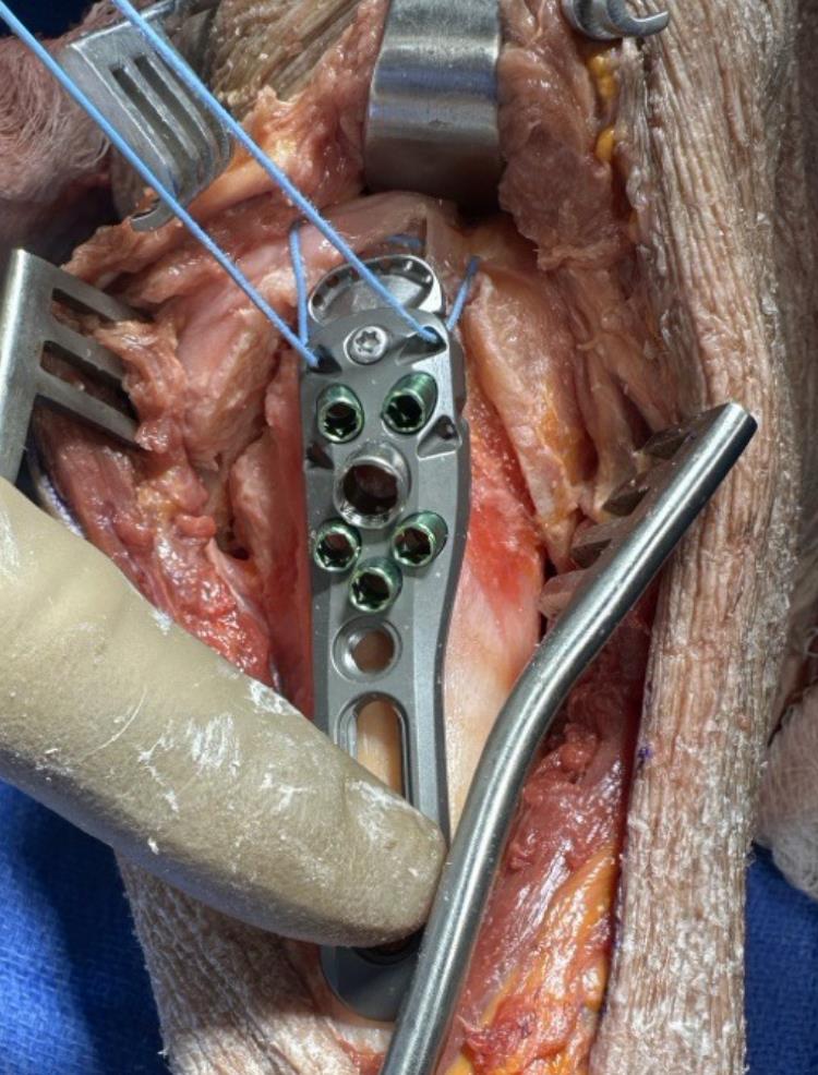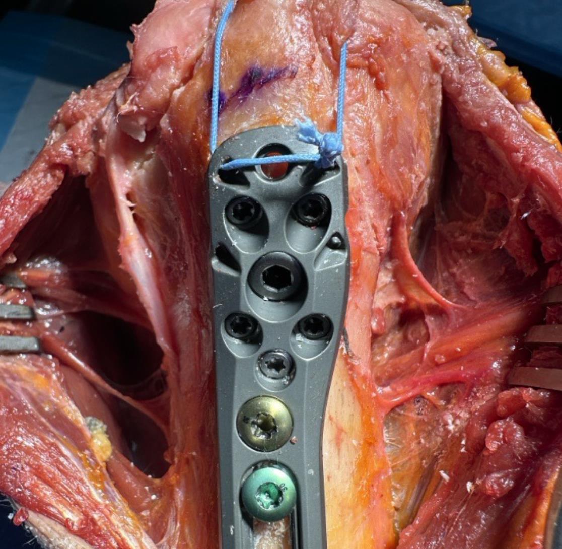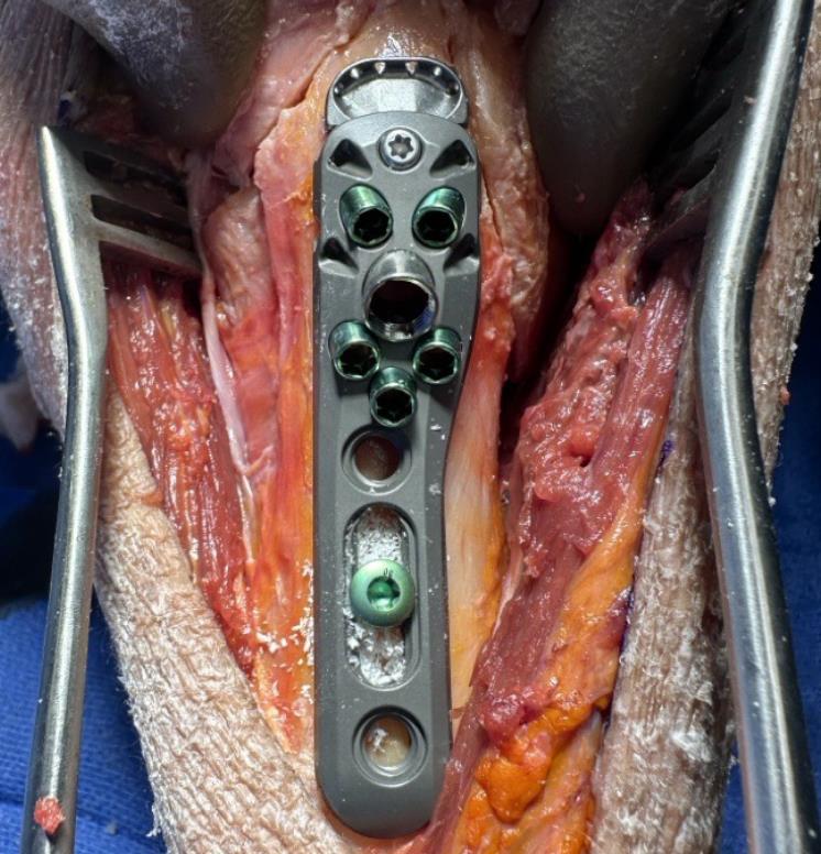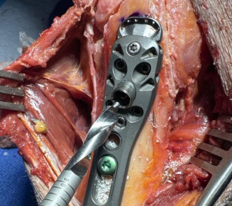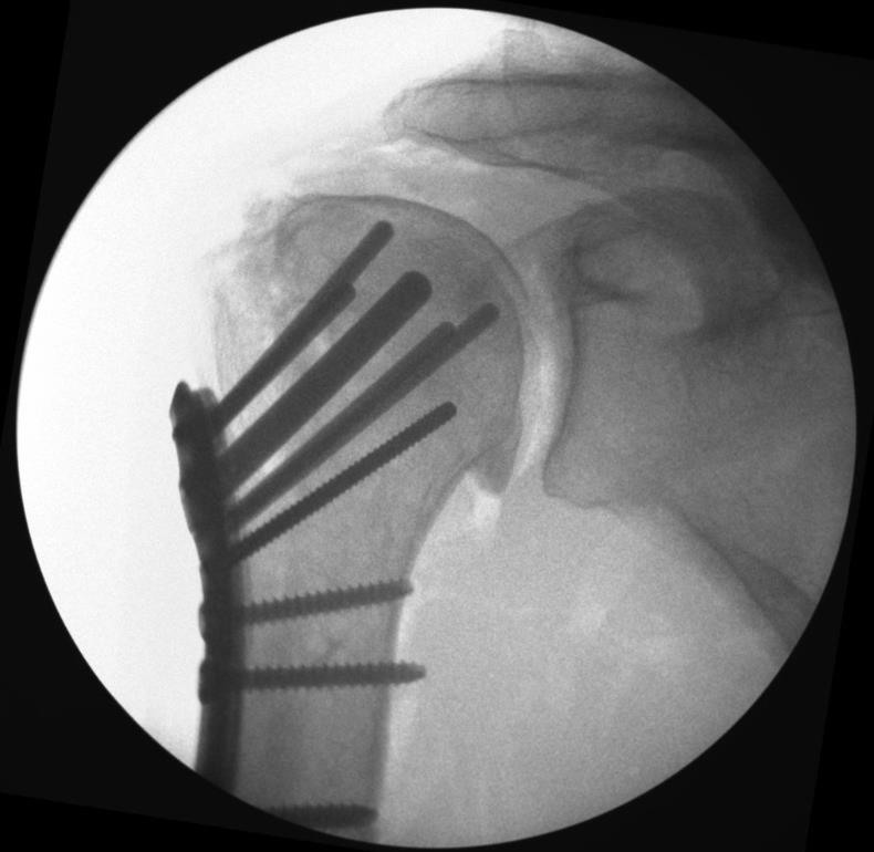 Summary The Proximal Humerus Fixation System (PHFS) from Skeletal Dynamics is a plate-and-peg/screw construct designed around proximal humeral anatomy for fixation of fractures, fracture-dislocations, osteotomies, and non-unions of the proximal humerus. The system centers on a proximal humerus plate with smooth locking pegs, locking/compression screws, and a central fixed-angle peg, with both straight and curved plate options. The PHFS is part of a modular proximal humerus plating platform with multiple plate geometries, accessory plates, and shared screw families Related Implants Plates included in proximal Humerus Fixation System (PHFS) include straight locking plates available with 1, 2, 6, 7, 8, 9, 10 11 shaft slots (75mm - 259mm lengths) curved locking plates available with 5–9 shaft slots (158mm - 254mm lengths) including a “6-slot plus” configuration Indications Indications fractures of the proximal humerus fracture-dislocations of the proximal humerus non-unions of the proximal humerus osteotomies of the proximal humerus Contraindications diaphyseal fractures oediatric fractures tumor reconstruction Relevant Anatomy Osteology the proximal humerus consists of the humeral head, greater and lesser tuberosities, bicipital groove, and metaphyseal/surgical neck. the humeral head has a typical neck–shaft angle of about 135 degrees, which the PHFS reproduces in its fixed-angle peg trajectories. metaphyseal bone quality is often compromised, particularly in elderly osteoporotic patients, emphasizing the importance of secure subchondral fixation . the PHFS has multiple, divergent, fixed-angle pegs oriented toward the humeral head dome to achieve broad subchondral spread and support the articular surface, with the goal of resisting varus collapse. the bicipital groove is an important anterior landmark the plate is positioned just lateral to this groove to align peg trajectories and maintain a safe corridor for the biceps tendon. Muscles rotator cuff muscles influence on fracture patterns and reduction supraspinatus inserts on the superior facet of the greater tuberosity and tends to displace greater tuberosity fragments superiorly. infraspinatus and teres minor insert on the posterior facets of the greater tuberosity, often pulling fragments posteriorly. subscapularis inserts on the lesser tuberosity and can medially displace this fragment. these forces guide fragment-specific reduction strategies and suture placement when using the plate’s suture holes or accessory suture plate. deltoid originates from the lateral clavicle, acromion, and scapular spine and inserts on the deltoid tuberosity. deltoid pull can exacerbate varus and shortening if the shaft is inadequately controlled. during exposure, the anterior deltoid is mobilized proximally in constructs using longer straight plates, partial or total release of the deltoid insertion may be considered for access, followed by repair as appropriate. pectoralis major inserts along the lateral lip of the bicipital groove. release of the proximal third of the tendon can improve exposure of the bicipital groove and proximal humeral shaft, as described in the technique guide. Ligaments the stability of the shoulder is provided by the coracohumeral ligaments glenohumeral ligaments shoulder capsule these ligament structures can be injured in fracture-dislocations the implant does not directly address ligament reconstruction, but reduction and fixation must respect remaining capsuloligamentous attachments. capsular handling should preserve as much viable tissue as possible when head-preserving fixation is planned. Nerves axillary nerve courses around the surgical neck, typically about 5 cm distal to the acromion. at risk during deep dissection and plate application, particularly with long plates. recommended plate positioning 2.5–3.0 cm below the greater tuberosity helps maintain a margin between the distal plate and the usual course of the nerve. musculocutaneous nerve originates from the lateral cord and enters the coracobrachialis on the medial side of the arm. during the deltopectoral approach, the coracobrachialis and biceps are retracted medially with care to avoid tension or compression on the nerve. More distal nerves Radial and ulnar nerves are typically distal to the usual working zone for proximal humerus plating but should be considered when dissection extends far down the shaft. Blood supply The humeral head is perfused by branches of the anterior and posterior humeral circumflex arteries and metaphyseal vessels forming the arcuate artery system. Varus malreduction, excessive head impaction, and circumferential periosteal stripping can jeopardize blood supply and increase the risk of osteonecrosis. The technique emphasizes gentle fragment mobilization, anatomic reduction, and limited stripping where possible to preserve perfusion while obtaining stable fixation. Approach Patient positioning Beach-chair positioning is commonly used, facilitating shoulder manipulation and anatomic orientation for reduction and fluoroscopy. Supine positioning is an alternative when anesthetic or spine considerations favor a flat position and may also facilitate fluoroscopy, depending on setup. The arm is draped free, often on a radiolucent table or shoulder table, with an assistant or mechanical arm holder to provide traction, rotation, and positioning. Skin incision and deltopectoral interval A 12–14 cm oblique incision is made beginning over the coracoid and extending distally toward the deltoid insertion. The cephalic vein is identified and preserved, usually retracted laterally with the deltoid to open the deltopectoral interval. Coracobrachialis and the short head of the biceps are retracted medially to expose the underlying humerus. The pectoralis major tendon insertion is identified; release of the proximal third of this tendon can improve exposure of the bicipital groove and proximal humeral shaft, as suggested in the technique guide. P