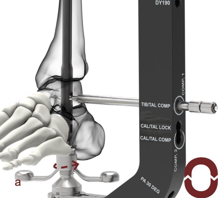 • in some cases remove small portions of distal fibula to allow optimal positioning and unobstructed access to the talus