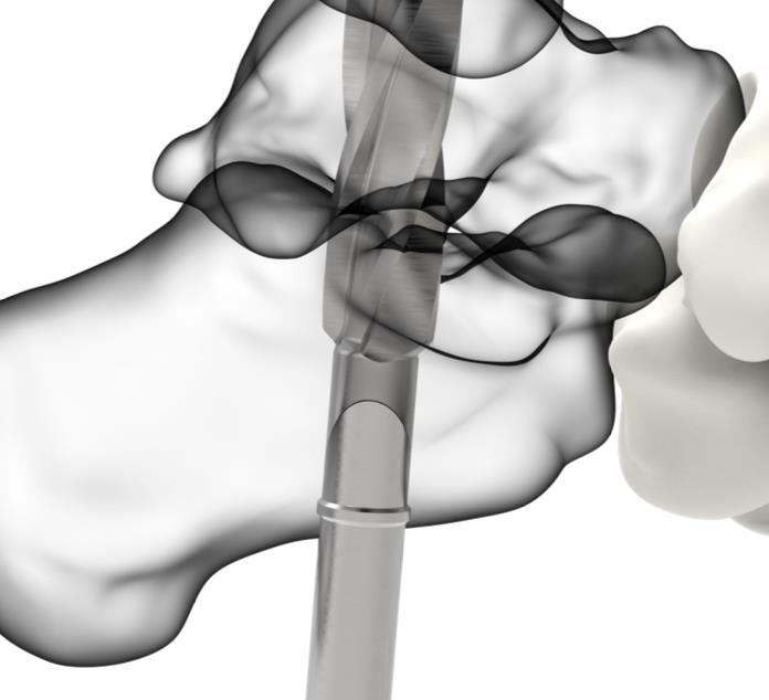 • particularly beneficial with an anterior exposure to help avoid interference with the fibula during talar screw insertion