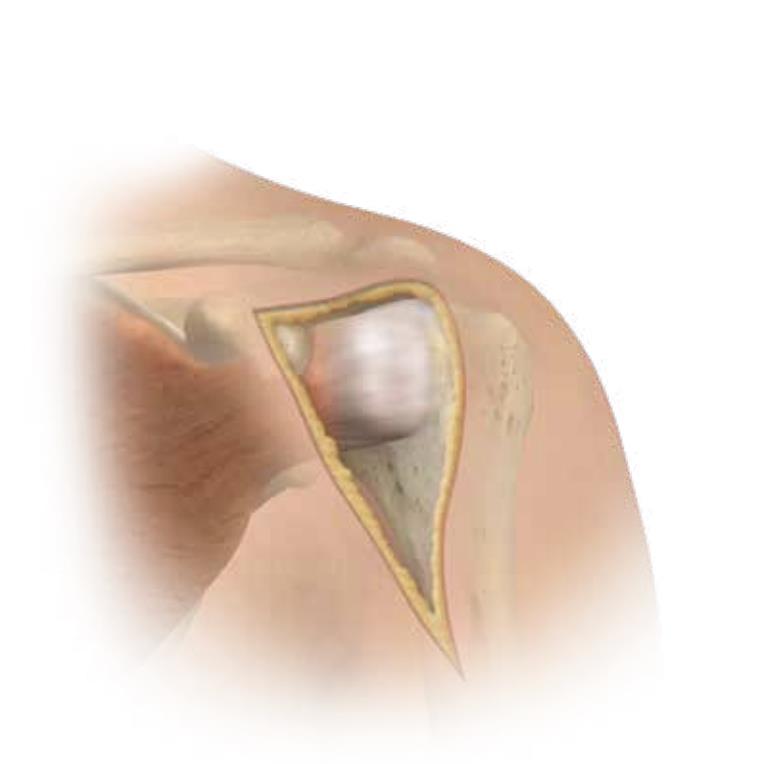 Summary The OsseoFit™ Stemless Shoulder System is indicated for anatomic total shoulder arthroplasty in patients where a bone-sparing, stemless solution is desired to maximize humeral fixation. It achieves this through OsseoTi® Porous Metal Technology and a site-specific fin design that creates a stable, biological press-fit while simplifying the surgical workflow with integrated suture holes. This system addresses a wide variety of patient anatomies using its versatile inlay and onlay size options. Indications Indications osteoarthritis indicated for anatomic total shoulder applications Contraindications local/systemic infection, sepsis, and osteomyelitis active local or systemic infection sepsis osteomyelitis inadequate humeral bone inadequate bone may lead to poor implant fixation large metaphyseal cysts may compromise stemless fixation irreparable cuff tear rotator cuff must be functionally reconstructable for anatomic total shoulder arthroplasty revision of any stemmed or stemless prothesis contraindicated for revision of any stemmed or stemless prosthesis Anatomy Osteology humeral head anatomic neck greater tuberosity lesser tuberosity bicipital groove metaphyseal cancellous bone Muscles deltoid forms the lateral border of the deltopectoral interval pectoralis major forms the medial border of the deltopectoral interval subscapularis released and repaired according to surgeon preference Ligaments glenohumeral capsule is released as needed to expose the humeral head and glenoid coracohumeral ligament contributes to rotator interval constraint superior, middle, and inferior glenohumeral ligaments contribute to anterior stability transverse humeral ligament overlies the bicipital groove Nerves axillary nerve courses inferior to the subscapularis and around the lateral humerus must be protected musculocutaneous nerve lies medial to the coracobrachialis and conjoint tendon suprascapular nerve is at risk with aggressive posterior-superior glenoid exposure Blood supply anterior and posterior humeral circumflex arteries arcuate artery is a terminal branch of the anterior humeral circumflex system suprascapular and circumflex scapular vessels Preoperative Planning X-rays A/P, scapular Y and axillary views evaluate bony anatomy, humeral head position, glenoid wear, deformity, and acquired bone loss use x-ray templates to estimate stemless humeral implant size assess whether an anatomic total shoulder reconstruction is appropriate CT assess bone quality and identify any humeral bone tissues use to assess bone quality and identify humeral bone issues that may affect implant selection evaluate metaphyseal bone stock, cysts, avascular necrosis, deformity, and cortical support Approach Extended deltopectoral anterior incision with an optional biceps tenodesis beginning immediately above the coracoid process and extending distally and laterally, following deltopectoral groove along the anterior border of the deltoid Technique Humeral head resection expose the humeral head and identify anatomic neck landmarks fixed-angle resection targets 135° inclination and 30° retroversion select left- or right-specific extramedullary resection guide align the guide post with the humeral shaft for fixed-angle resection align the 30° version rod with the forearm flexed at 90° place pins to define version and inclination and to stabilize the cutting surface resect the humeral head through the far side of the humeral head adjust the resection with the guide or calcar planer if needed assess bone quality with direct pressure perpendicular to the resected surface consider stemmed humeral fixation if cancellous bone is easily depressed or primary stability is questionable Humeral protection during glenoid preparation select the humeral resection cover that most closely fits the resected surface prepare the glenoid using the appropriate compatible glenoid technique remove the humeral resection cover before humeral sizing Humeral sizing place the humeral sizer onto the resection surface select the size intended to optimize cancellous bone fixation without violating the inner cortical rim orient the sizer so the bicipital groove bisects the superior and anterior fins insert the central Steinmann pin through the center of the sizer and through the lateral cortex avoid deep lateral cortical penetration to reduce risk to the axillary nerve place a lateral humeral retractor as needed to protect the axillary nerve confirm sizing after any additional planing Humeral bone preparation (boss reaming) ream until the boss reamer bottoms out on the resected surface ream over the central Steinmann pin with the boss reamer protect the lateral humerus and axillary nerve with a retractor remove the boss reamer while leaving the central Steinmann pin in place Humeral bone preparation (broaching) select the reference foot based on implant size select the broach that corresponds to the humeral sizer align the broach superior fin with the superior indicator line on the broach inserter slide the assembly over the central Steinmann pin until the broach contacts the resection surface remove the inserter-reference foot assembly and central Steinmann pin perform broach stability testing consider stemmed humeral fixation if the broach is unstable Humeral head trialing determine humeral head diameter and height using the humeral head sizing template or the resected humeral head seat the head trial assembly into the broach rotate the trial assembly with the hex driver to assess coverage of the resection surface confirm alignment with the anterior and posterior borders of the humeral resection increase offset if the head trial does not cover one side of the resection decrease offset if the head trial overhangs the resected bone reduce the joint and perform trial range of motion record the final offset letter or interval on the proximal humerus remove and disassemble the head trial assembly Implant insertion remove the broach with the slap hamm