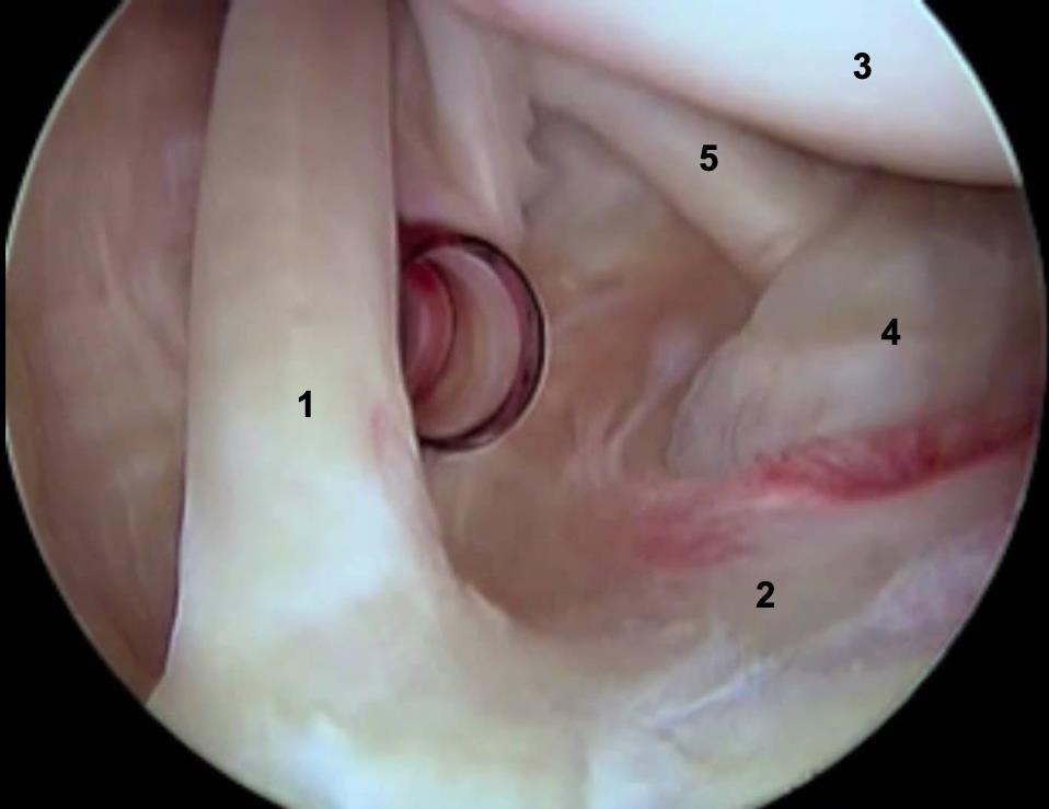 • includes the capsule, long head of the biceps tendon, SGHL, and the coracohumeral ligament that bridge the gap between the supraspinatus and the subscapularis.