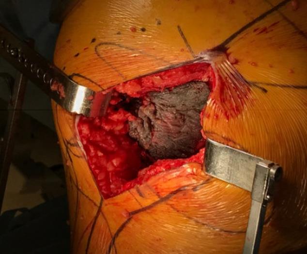 Revision of both acetabular and femoral components to include a ceramic on polyethylene bearing with I&D