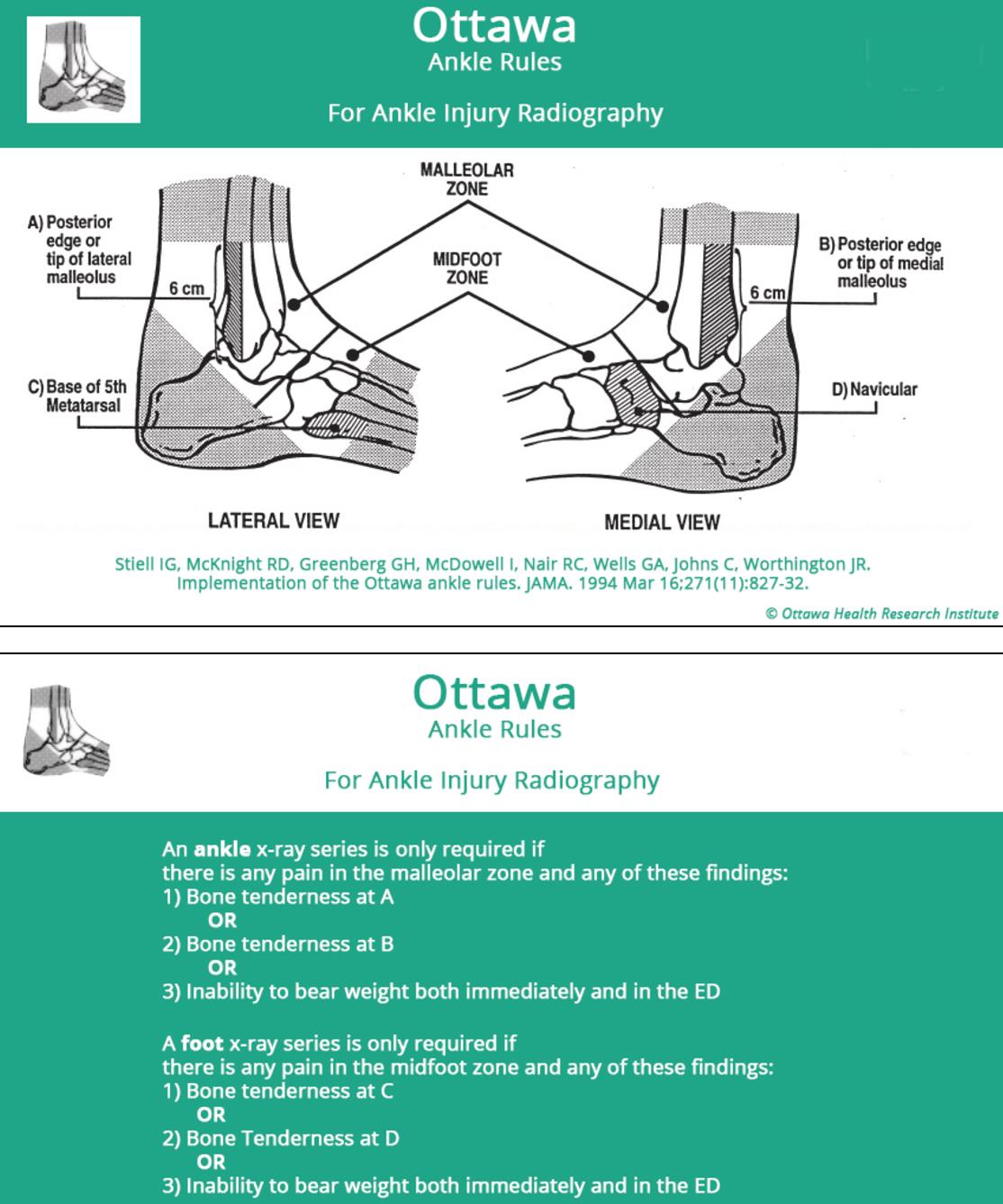 This patient sustained an acute ankle sprain. Early functional rehabilitation allows for the quickest return to physical activity following an acute ankle sprain.Ankle sprains are very common twisting injuries to the ankle that are the most common reason for missed athletic participation. Diagnosis can be made clinically with swelling and ecchymosis of the ankle and pain with range of motion. Radiographs are only indicated when clinical examination meets criteria (Ottawa ankle rules). Treatment usually includes a brief period of immobilization followed by early functional physical therapy. Operative management should be considered in grade I-III injuries that continue to have pain and instability despite extensive nonoperative management.Tropp et al. compared coordination training and orthosis use for the prevention of ankle joint injuries in soccer. They report that both techniques reduced the frequency of ankle sprains in soccer players with previous ankle problems. They concluded that the orthosis is an alternative to taping, and can be used during the rehabilitation period after injury or when playing on uneven ground, while coordination training ought to be included in the rehabilitation of ankle injuries to prevent functional instability. Stiell et al. prospectively compared original (first stage) and refined (second stage) clinical decision rules regarding the use of radiography in acute ankle injuries. They reported that the potential reduction in radiography is estimated to be 34% for the ankle series and 30% for the foot series using the refined rules. They concluded that refinement and validation have shown the Ottawa ankle rules to be 100% sensitive for fractures, to be reliable, and to have the potential to allow physicians to safely reduce the number of radiographs ordered in patients with ankle injuries by one third. Osborne et al. reviewed ankle sprains and prevention. They report that critical evaluation of the effectiveness of ankle braces supports their use for at least 6 months following injury in athletes who have sustained a moderate or severe sprain; however, their role in primary prevention of ankle sprain is less evident. They concluded that functional ankle rehabilitation is the mainstay of acute ankle sprain treatment and in recent reviews has been deemed preferable to immobilization or early surgery for the initial treatment of acutely injured ankles. Figures A&B are the AP and lateral radiographs of an ankle without osseous injury. Figure C demonstrates the anterior drawer test; ankle instability typically has >3mm of translation. Figure D demonstrates the syndesmosis squeeze test to diagnosis high ankle sprains. Illustration A depicts the Ottowa ankle rules. Incorrect Answers:Answers 1&2: Advanced imaging is not need in this acute injury. If the pain and swelling persistent, advanced imaging should be consideredAnswer 3: Anatomic reconstruction or tendon transfer with tenodesis should be considered in grade I-III injuries that continue to have pain and instability despite extensive nonoperative managementAnswer 5: Six weeks of immobilization should be avoided in an acute ankle sprain and early functional rehabilitation is encouraged