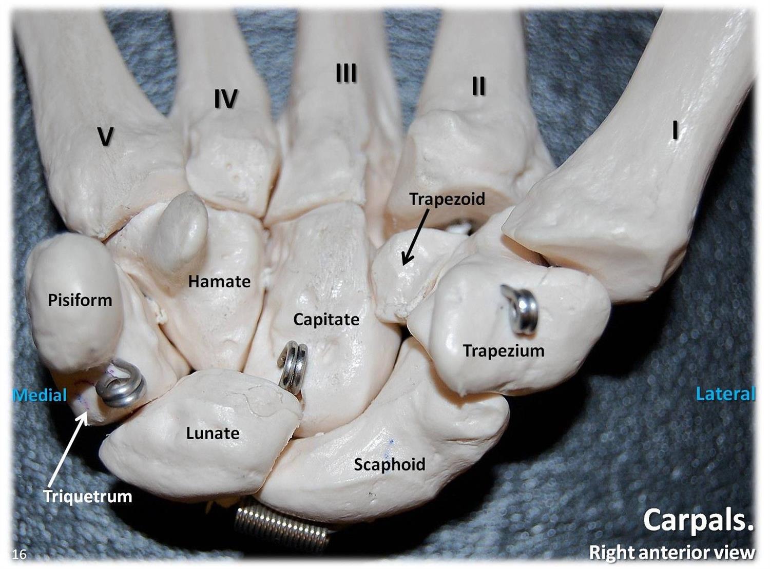 A proximal row carpectomy (PRC) procedure should be avoided if there are capitate head degenerative changes.Scaphoid Nonunion Advanced Collapse (SNAC) describes the specific pattern of progressive arthritis of the wrist that results from a chronic scaphoid nonunion. Diagnosis is made clinically with progressive wrist pain and wrist instability with radiographs showing scaphoid fracture nonunion with advanced arthritis of the radioscaphoid joint. Treatment involves observation in the early stages of the disease. A variety of operative procedures may be indicated depending on the severity of the disease and the patient's symptoms.Shah et al. reviewed SLAC and SNAC injuries of the wrist. They reported that these injuries are the two most common patterns of posttraumatic wrist arthritis. They concluded that PRC is a reasonable treatment option for stage II and III SNAC, with potential disadvantages being a reduction of wrist motion and grip strength. They also state that this procedure should be avoided if there are capitate head degenerative changes.Weiss et al. reviewed osteoarthritis of the wrist. They reported that this condition may result from a non-united or malunited fracture of the scaphoid or avascular necrosis of the carpus. They concluded that abnormal joint loading produces a spectrum of symptoms, from mild swelling to considerable pain and limitations of motion as the involved joints degenerate. Figure A is the unlabeled carpal bones of the wrist. Illustration A is the labeled carpal bones of the wrist. Illustration B is a postoperative radiograph of a PRC.Incorrect Answers:Answer 1, 2, 3, & 5: A PRC procedure should be avoided if there are capitate head degenerative changes, as evidenced by arthritis between the capitate and lunate. This procedure’s success is reliant upon normal cartilage/joint articulation of the capitate and lunate fossa of the distal radius.