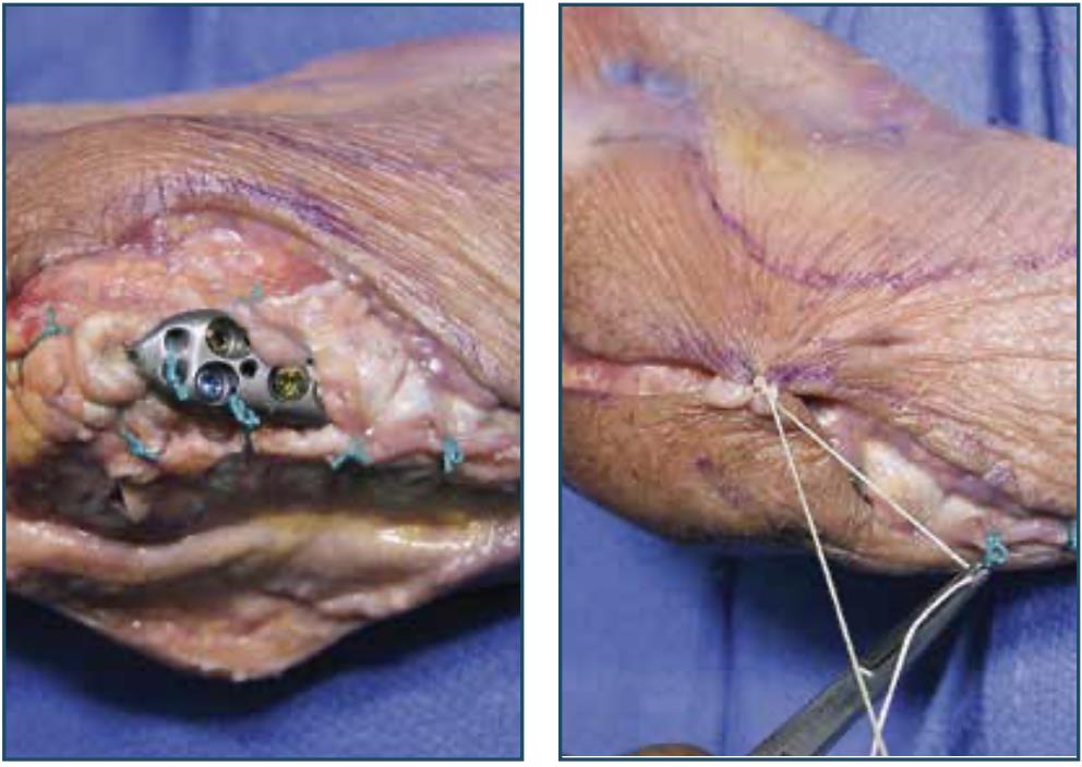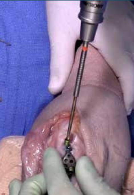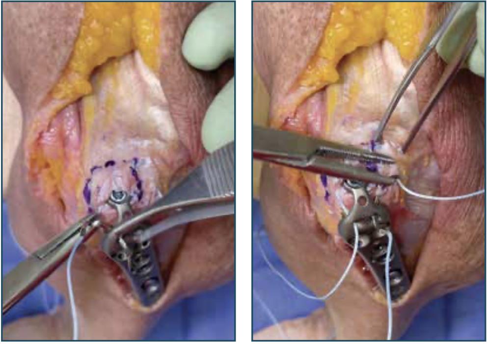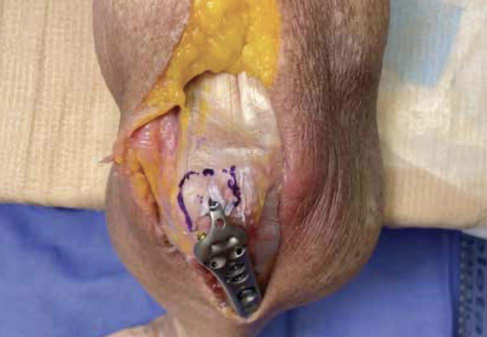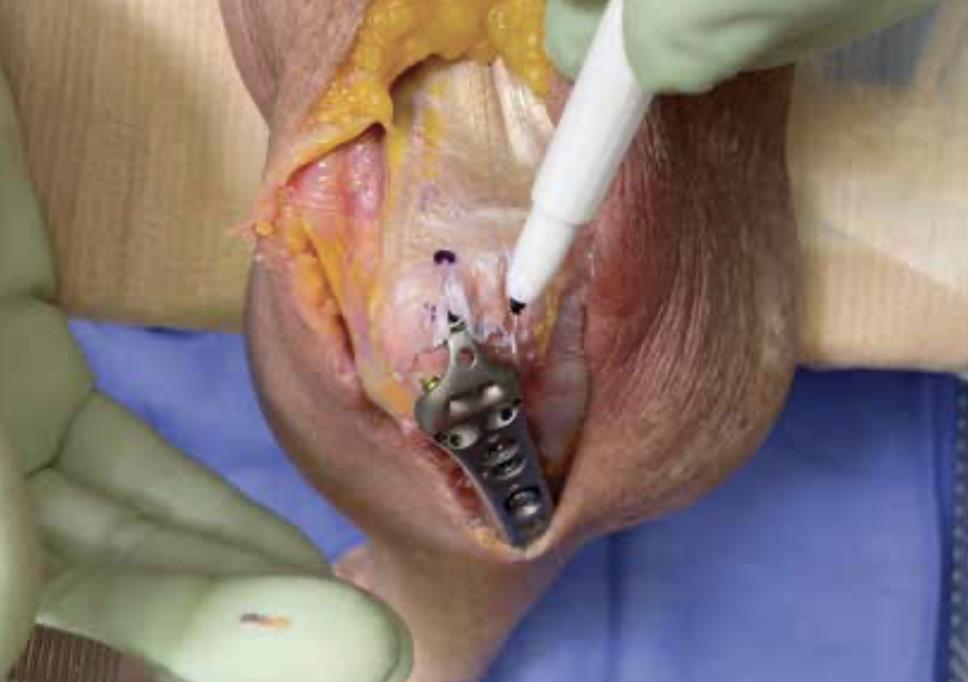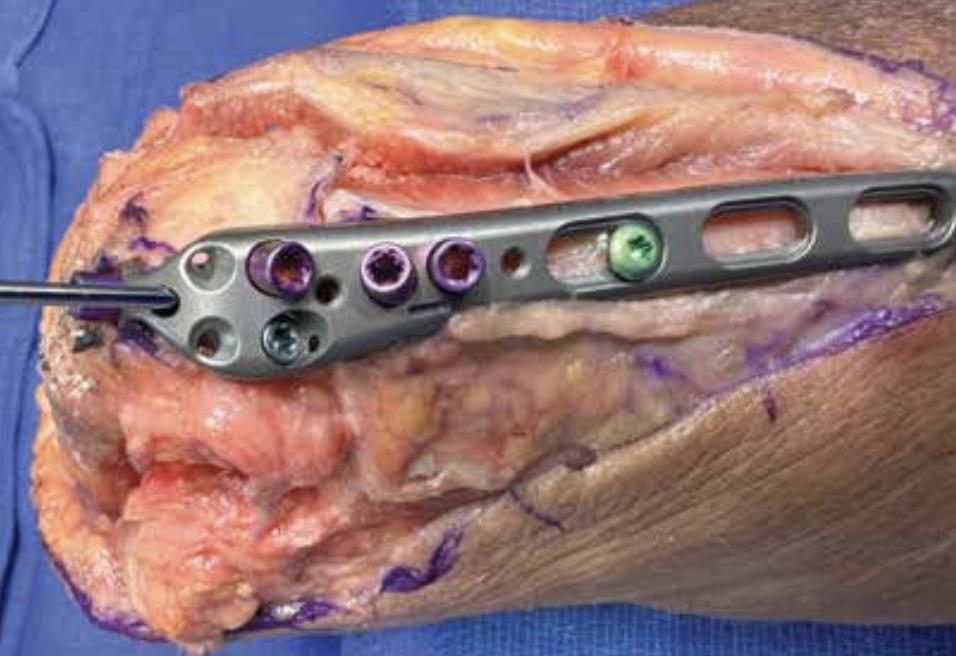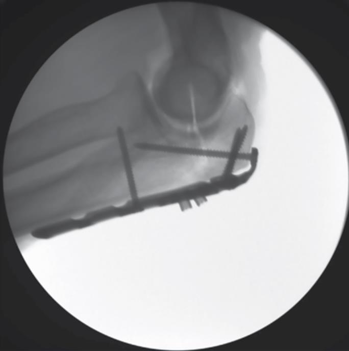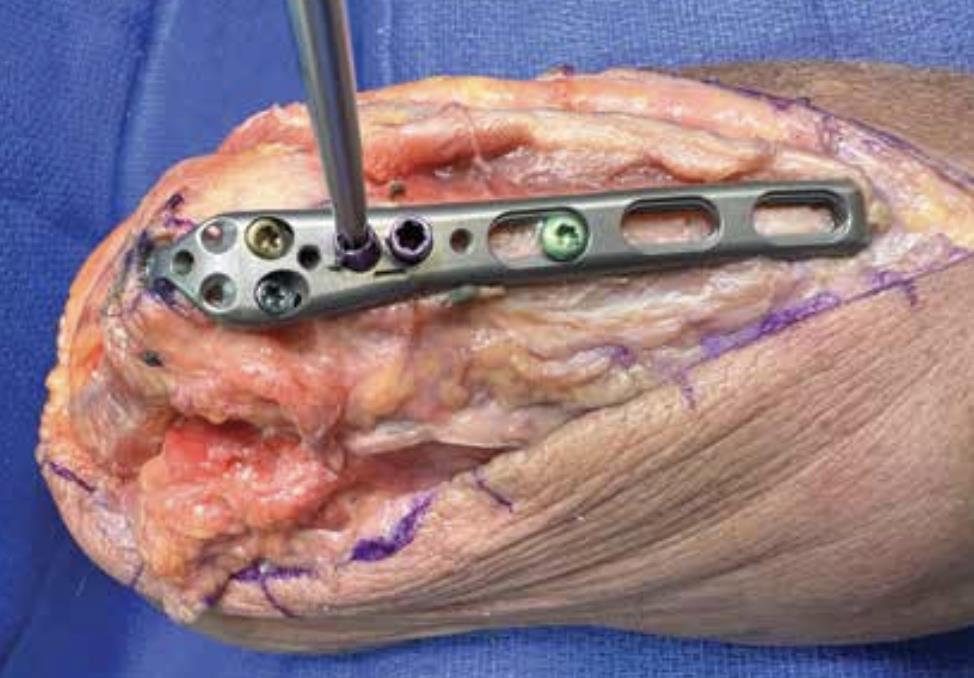 Summary The Skeletal Dynamics Distal Elbow Plating System consists of the following systems: Proximal Ulna Plate with FREEFIX® (this page) ALIGN® Radial Head System IJS® Elbow Stabilization System The Skeletal Dynamics Distal Elbow Plating System contains titanium alloy plates and screws Included in the set are cobalt chrome cannulated polyaxial locking screws, k-wires, and specialized instrumentation Indications Ulna fractures Fusions Osteotomies Non-unions Anatomy Osteology proximal ulna olecranon process coronoid tip trochlear notch ulnar shaft Muscles triceps anconeus flexor-pronator mass extensor-supinator mass brachialis Ligaments UCL (medial) LCL complex LUCL posterior capsule annular ligament Nerves ulna nerve medial nerve radial nerve posterior interosseous nerve Blood supply ulnar artery posterior ulnar recurrent interosseous vessels radial recurrent Preoperative Planning Imaging x-ray standard imaging includes AP and true lateral radiographs of the elbow oblique views and a forearm series to evaluate for associated diaphyseal or radial head injuries CT useful in complex intra-articular fractures allows detailed assessment of coronoid fragments, trochlear notch morphology, and radial head involvement Approach Posterior midline incision Technique Superficial Exposure with the elbow flexed to approximately 90 degrees, a posterior midline skin incision is made, curving gently around the olecranon tip and extending distally along the subcutaneous border of the ulna note: the incision can be curved slightly lateral or medial to the tip of the olecranon based on your preferred method warning: take care to avoid injury to the ulnar nerve Releasing the Ulnar Nerve locate the ulnar nerve release and protect the nerve, considering the possibility of transposition Deep Exposure expose the proximal ulna sub-periosteally Accessing the Joint for olecranon fractures, enter the joint through the fracture plane by releasing the capsular attachments on the proximal fragment as needed the articular surfaces can be evaluated at this time Debriding the Fracture debride the fracture site note: it is necessary to remove callus, clot and fibrous tissue in order to achieve a proper reduction Distal Triceps Release starting distal to proximal, split the triceps insertion longitudinally for approximately 1cm elevate the triceps along a narrow longitudinal strip to provide space for the “Home Run” (HR) tab Plate Selection select the appropriate length of plate that provides at least six cortices of fixation distal to the fracture line note: the shaft of the 5 Slot Plus plate can be bent using the Bending Irons if plate bending is necessary, refer to bending step warning: bending may weaken or break the plate be sure to inspect the plate for damage prior to use. Provisional Plate Fixation apply the plate to the proximal fragment confirming that the plate is centered on the ulna shaft and that the HR tab is flush to the olecranon secure the plate to the proximal fragment using a 2mm K-Wire through the hole at the base of the HR tab note: if the home run tab adjustment is necessary to improve fit, refer to adjustment step Fracture Reduction reduce the fracture by levering the shaft of the plate to the distal fragment confirm fracture reduction and plate alignment using fluoroscopy Distal Fragment Fixation using the 2.7mm x 40mm drill bit, drill through the distal end of a FreeFix slot that is distal to the fracture line through both cortices this will allow for dynamic compression of the fracture measure screw length using the appropriate scale on the 50mm Depth Gauge, then insert a 3.5mm compression screw using the T-10 Driver while applying interfragmentary compression note: the depth gauge has a dual scale to reflect measurements through the PDGs (top scale) or directly through the plate (bottom scale) Proximal Fixation Options A the two proximal holes containing Pre Assembled Drill Guidesare for fixation to the olecranon B the adjacent two distal holes containing PDGs are for fixation to the coronoid C all PDGs can accept an AIMing Guide using 2.0mm K-Wires for provisional fixation if it is necessary to alter a screw trajectory, remove the PDG and drill free-hand a tissue protector is included in the system if a 3.0mm Cannulated Polyaxial Locking Screw (PLS) is needed, refer to steps 'Cannulated 3.0 PLS SETUP' through 'Cannulated 3.0 PLS Fixation' Provisional K-wire Fixation if provisional plate fixation is needed, insert a 2.0mm AIMing Guide into the desired PDG, then drive a 2.0mm k-wire through the AIMing Guide, taking care to avoid the articular surfaces of the joint using the 2.7mm drill bit, drill through the PDG if a K-Wires obstructs drilling, it may be bent out of the way Olecranon Fixation measure the screw length using the appropriate scale on the 50mm Depth Gauge using the T-10 Driver, remove the PDG and insert the correct length 3.5mm Multi-Thread Compression Screw until the screw head contacts the plate remove the K-Wires at the base of the HR tab, then fully seat the Compression Screw until the plate is reduced to the olecranon note: it is recommended to subtract ~2mm from the measured screw lengths to avoid compromising the articular surfaces and/or soft tissue irritation Fluoroscopic Confirmation repeat steps past two steps for the remaining olecranon screw hole using a 3.5mm Multi-Thread Locking Screw confirm proper plate positioning, fracture reduction and screw lengths using fluoroscopic imaging Preparing the Home Run Tab confirm that the HR tab is flush to the tip of the olecranon using the 2.7mm x 80mm drill bit, drill through the PDG, then measure and record the screw length using the appropriate scale on the 80mm Depth Gauge note: if the HR tab was bent, confirm that the new trajectory will avoid contact with the articular surfaces of the joint warning: bending may weaken or break the plate be sure to inspect the tab for damage prior to use Over Drilling the Home Run Tab us