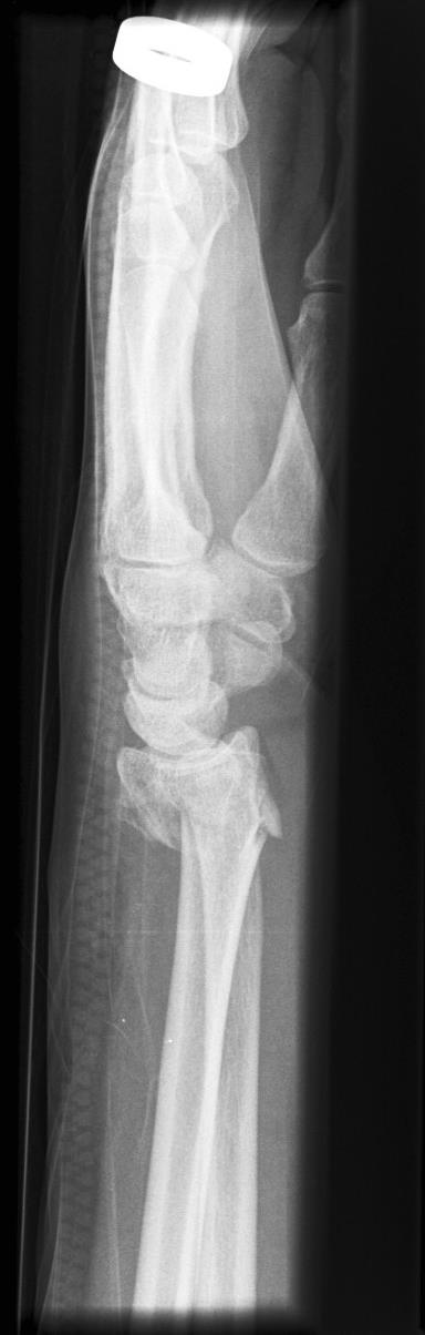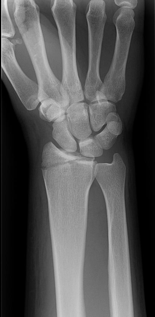 Summary Distal radius fractures are the most common orthopaedic injury and generally result from fall on an outstretched hand. Diagnosis is made clinically and radiographically with orthogonal radiographs of the wrist Treatment can be nonoperative or operative depending on fracture stability and fracture displacement as well as patient age and activity demands Epidemiology Incidence accounts for 17.5% of all fractures in adults lifetime risk is 15% for women and 2% for men Demographics more common in females (2-3:1) bimodal distribution younger patients due to high energy mechanisms older patients due to low energy mechanisms (i.e. FOOSH) considered fragility fracture and warrants further bone density workup Anatomic location Approximately 65% extra-articular, 10% partial articular, and 25% complete Risk factors osteoporosis high incidence of distal radius fractures in women > 50 years old distal radius fractures are a predictor of subsequent fractures DEXA scan is recommended for older patients with distal radius fractures and/or lower energy mechanisms Etiology Pathophysiology mechanism of injury fall on outstretched hand (FOOSH) from standing height is most common in older population higher energy mechanism more common in younger patients, particularly motor vehicle collisions Associated conditions DRUJ injuries radial styloid fractures indicates higher energy mechanism soft tissue injuries - seen in 70% TFCC injury (40%) scapholunate ligament injury (30%) lunotriquetral ligament injury (15%) Anatomy Osteology distal radius responsible for 80% of axial load articulates with scaphoid via scaphoid fossa lunate via lunate fossa distal ulna via ulnar/sigmoid notch comprised of 3 columns radial column includes the radial styloid and scaphoid fossa radial styloid is a relatively volar structure important consideration for placement of radial styloid pin or screw functions attachment sites for the brachioradialis tendon, long radiolunate ligament, and radioscaphocapitate ligament radioscaphocapitate ligament prevents ulnar translation of the carpus serves as a buttress to resist radial carpal translation functions as a load-bearing platform for activities performed with the wrist in ulnar deviation holds the carpus out to length radially, allowing a more uniform distribution of load across the scaphoid and lunate facets intermediate column lunate fossa functions transmits load from the carpus to the forearm origin of short radiolunate ligament important for radiocarpal joint stability ulnar column includes the TFCC and distal ulna functions stability of the DRUJ forearm rotation Lister's Tubercle On dorsal surface of distal radius, approximately 1 cm proximal to articular surface EPL tendon lies just ulnar to tubercle before taking sharp turn into the thumb Important landmark to avoid EPL attritional rupture with long volar plate screws Watershed region Most volar and prominent aspect of distal radius Lunate portion is most prominent with vital short radiolunate ligament attachment for radiocarpal stability Important region to remain proximal to for volar plate fixation Classification Fernandez based on mechanism of injury Frykman based on joint involvement (radiocarpal and/or radioulnar) +/- ulnar styloid fracture Melone divides intra-articular fractures into 4 types based on displacement AO comprehensive but cumbersome Eponyms Eponyms Name Description Illustration X-ray Die-punch fx Depressed fracture of the lunate fossa of the articular surface of the distal radius Volar Barton Fracture-dislocation of radiocarpal joint with intra-articular fx involving the volar lip Dorsal Barton Fracture-dislocation of radiocarpal joint with intra-articular fx involving the dorsal lip Chauffer's fx Transverse or oblique radial styloid fx Colles' fx Dorsally angulated, extra-articular fx Smith's fx Volarly angulated, extra-articular fx Presentation History usually a fall onto outstretched hand (FOOSH) Symptoms wrist pain wrist swelling wrist deformity Physical exam inspection ecchymosis & swelling diffuse tenderness visible deformity if displaced motion limited by pain Imaging Radiographs recommended views AP lateral oblique findings Radiographic criteria Measurement Normal Acceptable criteria Radial height (AP) 13mm < 5mm shortening Radial inclination (AP) 23° Change < 5° Articular stepoff (AP) Congruous < 2 mm stepoff Volar tilt (Lateral) 11° Dorsal angulation < 5° or within 20° of contralateral distal radius CT indications evaluate intra-articular involvement surgical planning MRI indications evaluate for soft tissue injury TFCC injuries scapholunate ligament injuries (DISI) lunotriquetral injuries (VISI) Treatment Nonoperative closed reduction and immobilization indications extra-articular < 5mm radial shortening dorsal angulation < 5° or within 20° of contralateral distal radius technique immobilization can be in below arm cast or splint depending on fracture pattern Operative closed reduction percutaneous pinning (CRPP) indications extra-articular fracture with stable volar cortex outcomes 82-90% good results if used appropriately open reduction internal fixation (ORIF) indications radiographic findings indicating instability (pre-reduction radiographs best predictor of stability) dorsal angulation > 5° or > 20° of contralateral distal radius volar or dorsal comminution displaced intra-articular fractures > 2mm radial shortening > 5mm associated ulnar fracture associated ulnar styloid fractures do not require fixation severe osteoporosis articular margin fractures (dorsal and volar Barton's fractures) the volar ulnar corner (critical corner) supports the volar lunate facet with its strong radiolunate ligament attachments failure to address this fragment can result in volar carpal subluxation comminuted and displaced extra-articular fractures (Smith's fractures) die-punch fractures progressive loss of volar tilt and radial length following closed reduction and casting external fixation (Exfi