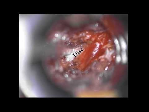 Dr. Pakzaban (www.pakzaban.com) demonstrates a lateral foraminotomy and microsurgical resection of a far lateral disc herniation. Far lateral disc herniations are less common than the ususal posterior or posterolateral disc herniations and affect the exiting rather than the traversing nerve root. For example a far lateral L3-4 disc herniation (foraminal or extra-foraminal) compresses the L3 nerve root, whereas a posterolateral disc herniation affects the L4 nerve root. The surgical technique involves a more lateral exposure to unroof the neural foramen and decompress the exiting nerve root.