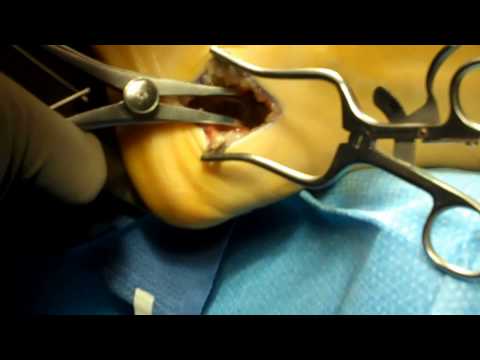 This is an osteotomy of the calcaneus for a flatfoot deformity to correct the hindfoot. This cutting of the heel bone allows the back half to be shifted back under the leg instead of being turned out. This is part one of two parts.
