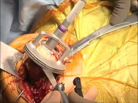 This demonstrates the procedure, Reversed Total Shoulder Replacement, using the Bony Increased Offset method. The procedure is performed for patients with a massive rotator cuff tendon tear and osteoarthritis.