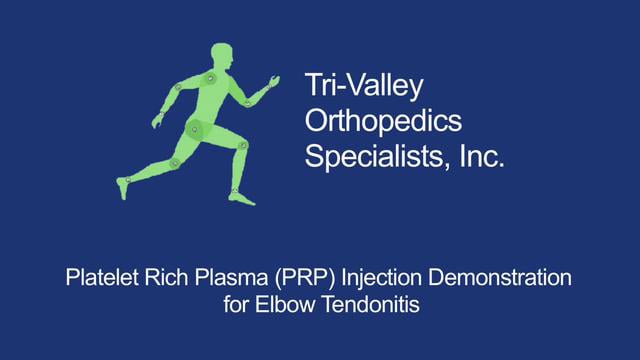 This video is an example of a Platelet-Rich Plasma Injection into the elbow performed at Tri-Valley Orthopedics. Platelet-Rich Plasma injections, or PRP injections, are a treatment for some of the more common tendon injuries and chronic tendon pain. Not limited to just the elbow, PRP injections can be used to treat other joints such as the knee and ankle as well.An injection into the elbow as shown is an example of how a PRP injection would be used to treat an injury such as lateral epicondylitis, or "tennis elbow".