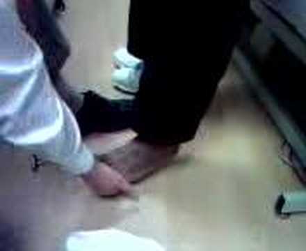 Significant and multiple beats of clonus in the left foot of a patient with cervical myelopathy.Dimar et al review 104 patients with cervical myelepathy. They found 10 (9.6%) had sustained clonus at presentation. Here is the breakdown of other physical exam findings on presentation: "66 patients (63.5%) reported gait disturbance, 18 (17.3%) had handwriting changes, 33 (31.7%) complained of deterioration of dexterity, 56 (53.8%) had grasp weakness, 7 (6.7%) had bowel and bladder complaints, 27 (26.0%) had a positive Hoffmann sign, 10 (9.6%) had sustained clonus, and 10 (9.6%) had a positive Babinski sign."Dimar JR 2nd, Bratcher KR, Brock DC, Glassman SD, Campbell MJ, Carreon LY. Instrumented open-door laminoplasty as treatment for cervical myelopathy in 104 patients. Am J Orthop (Belle Mead NJ). 2009 Jul;38(7):E123-8. PubMed PMID: 19714281. Level of Evidence: 2. PMID: 19714281 (Link to Abstract)