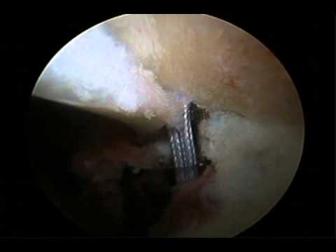 This is the classic technique for acetabular labrum re-fixation, using a knot-less anchor.