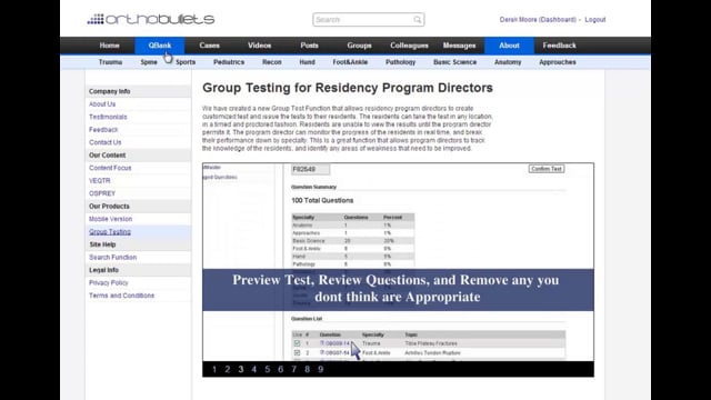 This video gives a quick tutorial on how to create a group test and distribute it to a group of people (residents).Here is a link to the page to create a group test.http://www.orthobullets.com/qbank/group