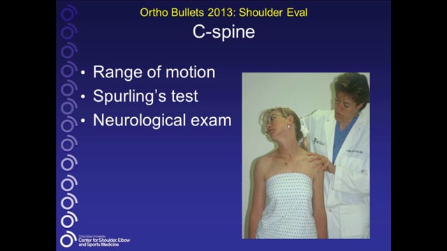 This video is a complete overview of the physical exam of the shoulder. It covers all of the potential pathologic processes that we find in patients that present with shoulder problems.Length: 39 minutes, 24 seconds
